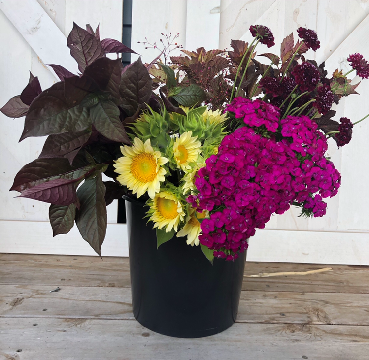 DIY Flowers in any colors (grower's choice): $110/bucket ($5 discount for each returned bucket)